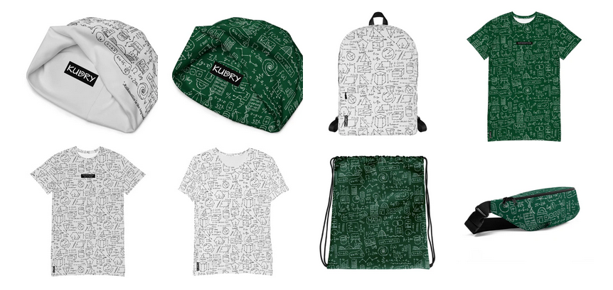 Looks like 1-2 maths-specific designs applied to a bunch of various merch: shirts, shoes, beanies, etc. I own the two beanies in the top left (and the white one allows you to insert a custom quote/message!)